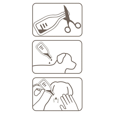 • Pipet kan na het openen neergezet worden, zodat de huid van de hond goed vrijgemaakt kan worden met 2 handen voor het toedienen van de pipet.
