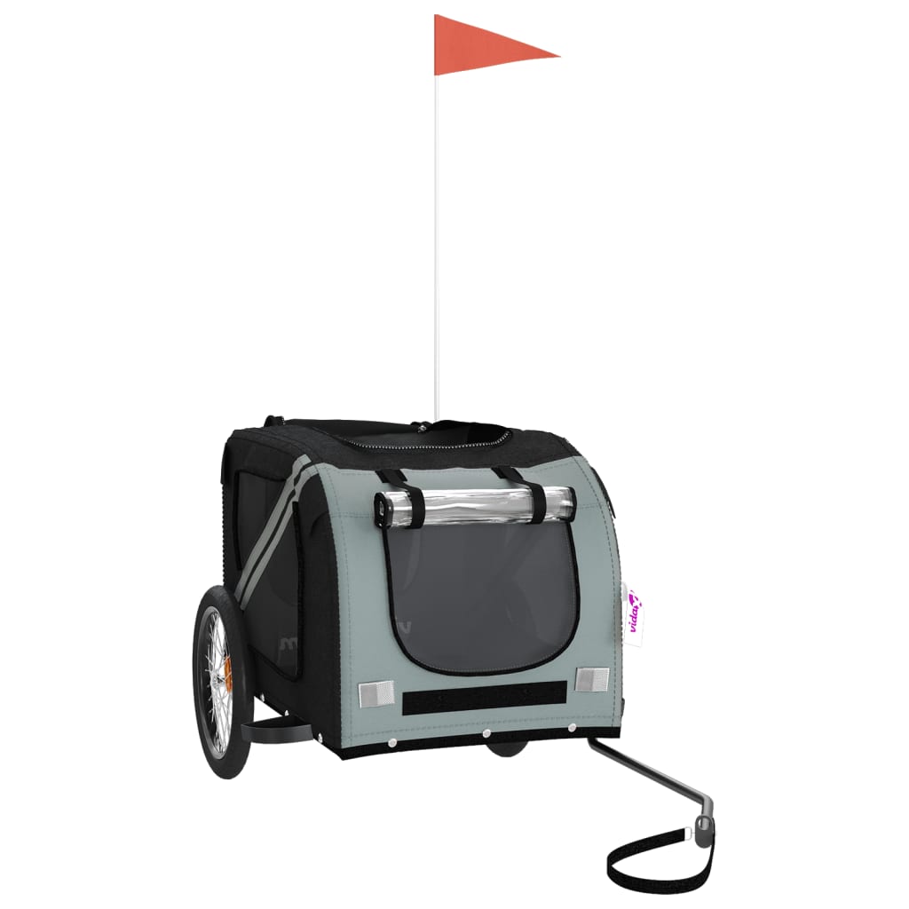 Hondenfietstrailer oxford stof en ijzer zwart en grijs