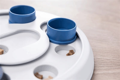 Het Trixie Dog Activity Intelligentiespel Flip & Fun van 23 x 23 cm is een bordspel voor de hond waar jouw dier met verschillende technieken zijn beloning te pakken moet zien te krijgen. Het spel is gemaakt van kunststof en voorzien van een kegel als stopper, diverse kommetjes en schuifdeksels. Door de kegel als stopper te gebruiken kan de moeilijkheidsgraad worden opgeschroefd. Door de slipvaste rubberen ring zal het speeltje niet verschuiven tijdens het spelen. Bovendien komt het spel met een handleiding met tips en handigheidjes om de training te optimaliseren.