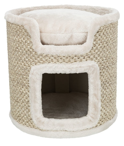 De Trixie Krabton Ria Krabpaal Lichtgrijs/Natuur van 37X37X37 cm is een ronde krabton voor de kat met sisal krabvlakken, schuilplaats, kussen en gevoerde ligplateaus. Een heerlijke eigen plek voor jouw kat hoeft niet te veel ruimte in te nemen, dat bewijst deze leuke krabton van Trixie. Krabton Ria is een compacte krabpaal voor de kat met twee verdiepingen. De ligplateaus zijn gevoerd voor meer comfort en het bijgeleverde wendbare kussen zorgt ervoor dat jouw kat heerlijk zacht kan wegdromen. De schuilplaats onderop is bekleed met lekker zacht pluche en fleece en aan de buitenkant is de ton bekleed met sisal, om jouw kat genoeg krabmogelijkheden te bieden. Krabben is een natuurlijke behoefte voor de kat, dus zorgt altijd voor voldoende mogelijkheden om te voorkomen dat jouw kat aan het meubilair begint!